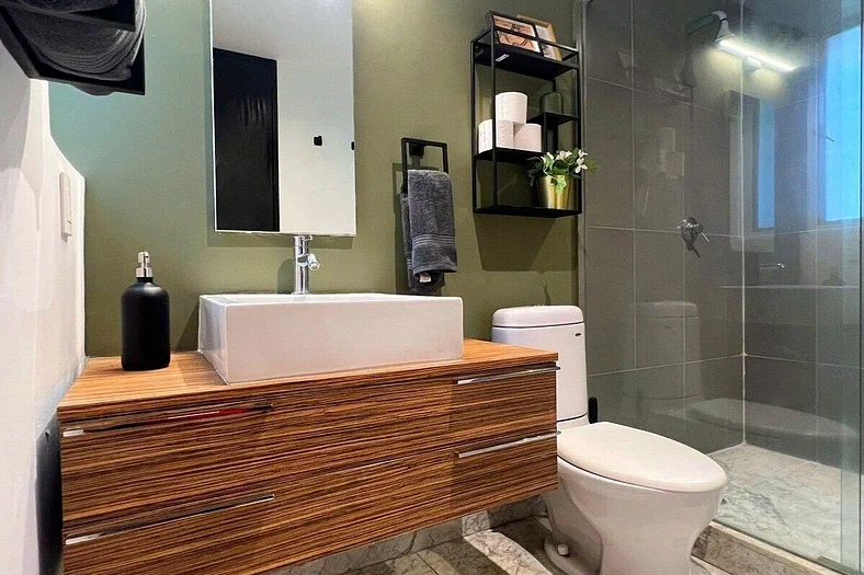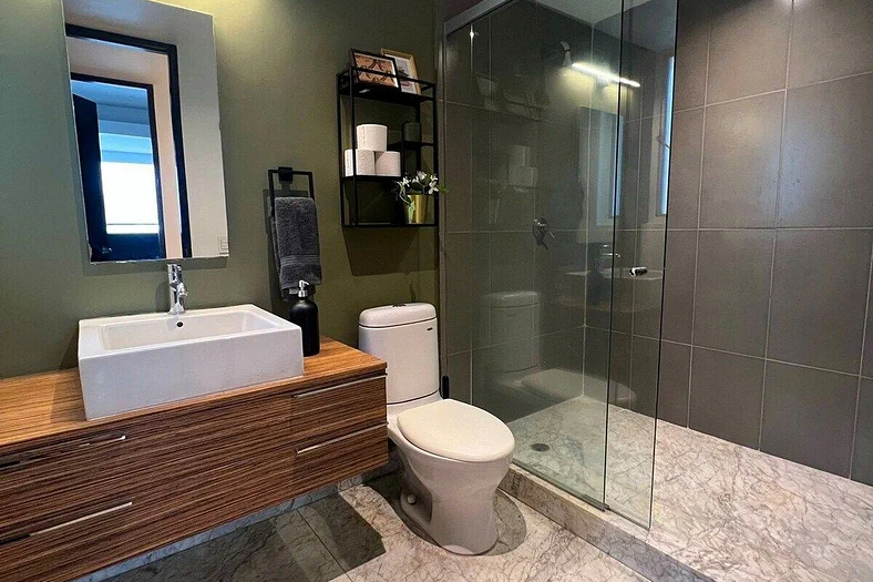 Casa del Bosque está ubicada en una pequeña privada con solamente 7 casas. La terraza tiene una vista espectacular al bosque, un jacuzzi exterior (costo extra), una sala exterior, y un BBQ. Hay camastros del sol para relajarte y disfrutar la vista o leer un buen libro. Puedes caminar abajo al rio donde voy a meditar ya que está tranquilo y está rodeado del agua y mini cascadas. En la noche puedes cocinar una cena en la cocina que está completamente equipada, pasar el tiempo al lado de la chimenea o calentarte en el jacuzzi. Es un escape perfecto lejos del caos y multitudes de gente de la ciudad. Mascotas son bienvenidas solo 2 Razas medianas y pequeñas únicamente