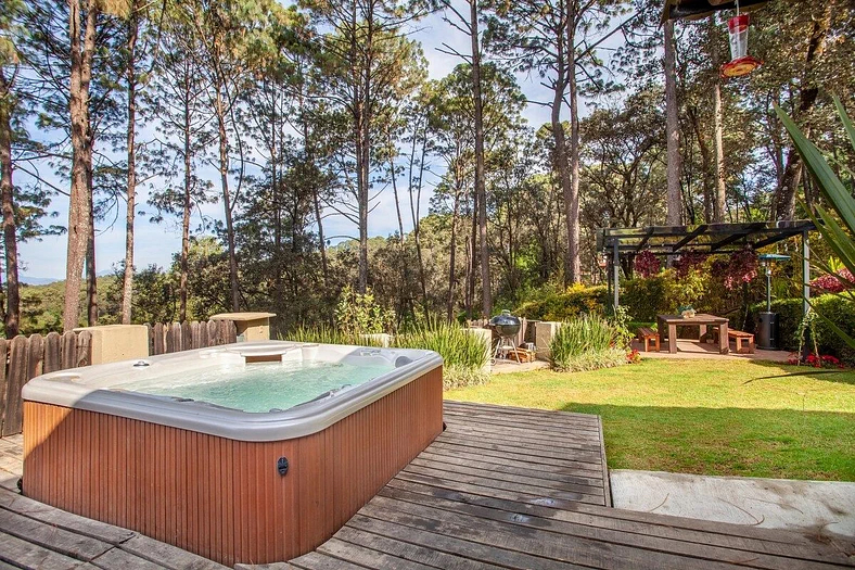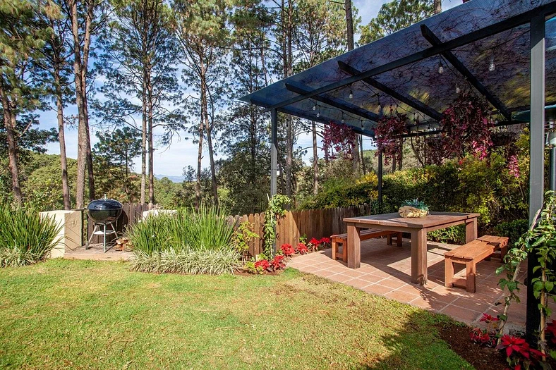 Amanece rodeado de pájaros cantando y ardillas saltando entre las ramas. Disfruta de la paz y la privacidad desde una hermosa terraza mirando al bosque. En el día, visita las atracciones locales como velear o el senderismo o disfruta de una deliciosa parrilla con tus amigos y familiares. En la noche, enciende la chimenea o metete en el jacuzzi ( costo extra) al aire libre bellamente iluminado. Casa Valle es perfecta si buscas conectarte con la naturaleza y desconectarte de la ciudad.