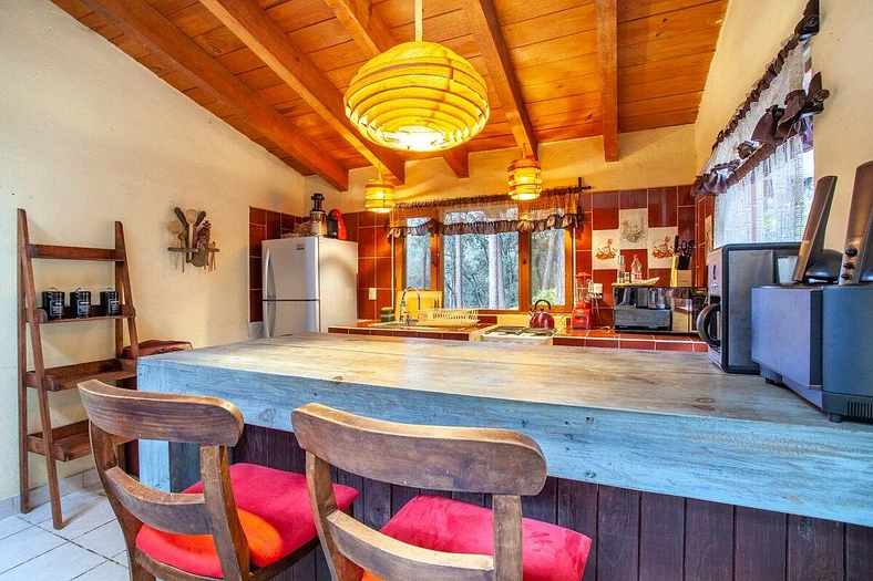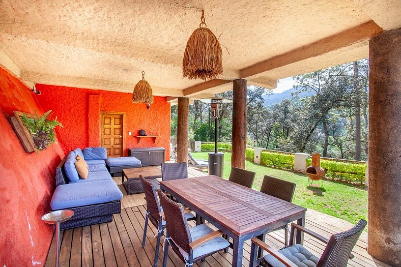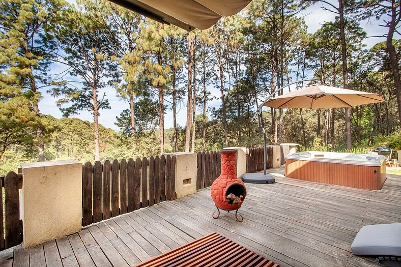 Para llegar desde el estacionamiento a la casa y de la casa a la terraza hay un camino corto pero bastante inclinado por lo cual puede resultar difícil para las personas mayores o con alguna lesión. Si quieres usar el jacuzzi, por favor avísame antes de llegar. Tiene un costo extra de 1,400 pesos por el fin de semana ya que usa mucha energía. Puedes comprar la lena directamente de Juan si lo desees. La leña para la chimenea no viene incluida Puedes comprar la leña directamente de Juan si lo deseas. Contamos con un calentador para jardín el cual requiere un tanque de gas con un costo de 600 pesos y hay que solicitarlo con anticipación para su instalación Por favor, toma en cuenta que estas en el medio del bosque. Hay humedad y durante la época de lluvia es posible que se vaya la luz o que el wifi no funcione ya que las fuertes lluvias y el viento a veces tumban los árboles que se caen encima de los cables. Aunque siempre trato de resolver cualquier situación lo más rápido posible, los caprichos de la naturaleza y la respuesta de la CFE o Telcel están fuera de mi control. Si tienes cualquier problema, por favor háblame. La comunicación asegura tu felicidad como huésped y mi buen servicio como host.